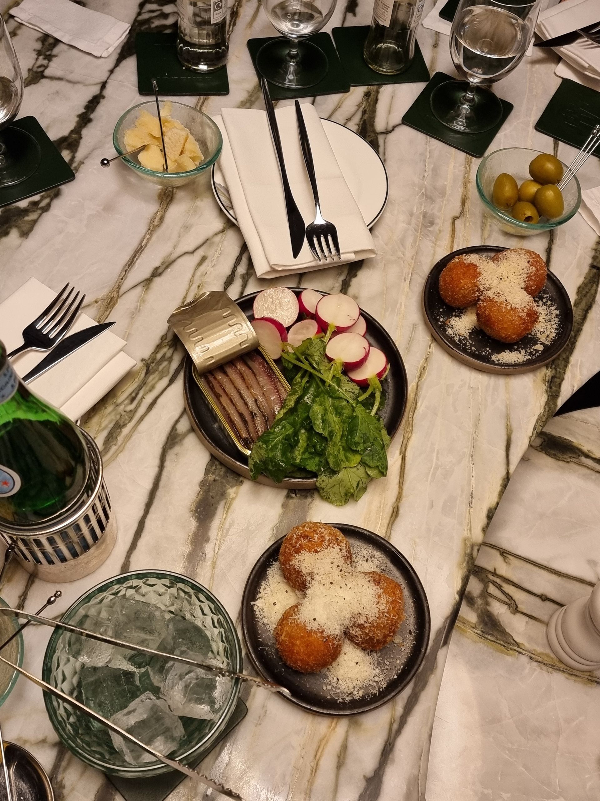 Anchovies & Arnacini, a unique combination of bar snacks to complement the drinks on offer.