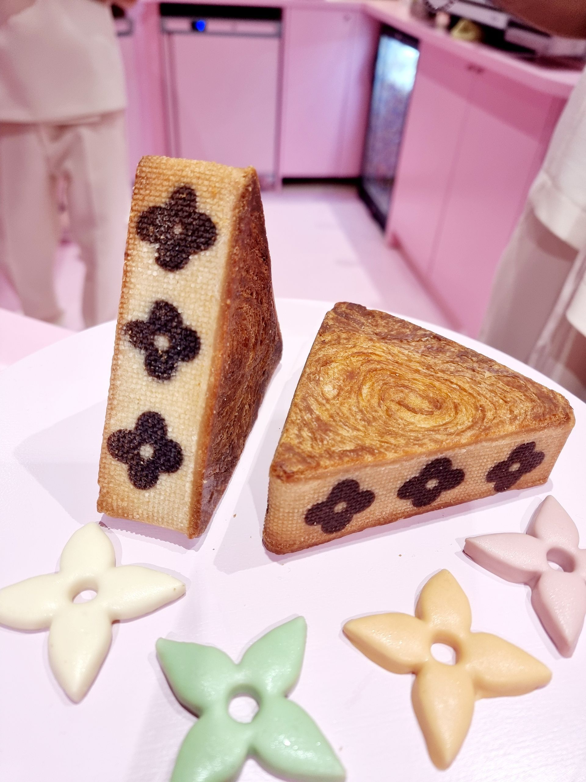 There is cute pink themed coffee shop upstairs where you can get a variety of sweet treats with LV embossed designs.