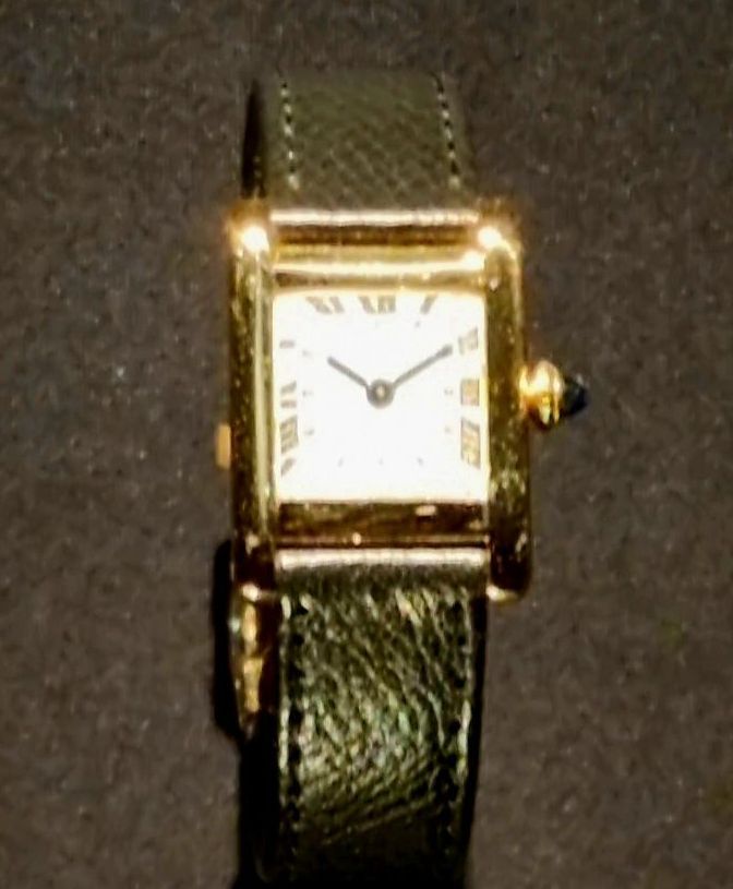 One of many Iconic Pieces from Cartier - THE TANK WATCH Created in 1917, this refined piece, combining geometry and harmony,This particular watch on display used to belong to Jacqueline Kennedy. She received this as a gift from her then brother-in-law, Prince Stanislaw Radziwill, after family members completed the Fifty Mile Hike in Palm Beach in 1963. The watch was later acquired by Kim Kardashian.